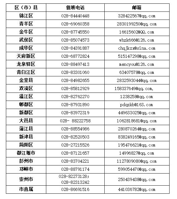 附成都市各区(市)县招生考试机构联系电话及电子邮箱。